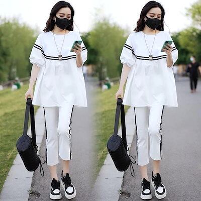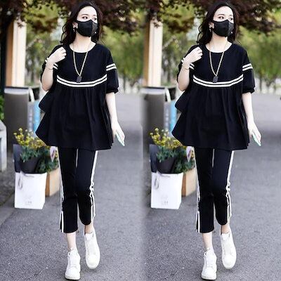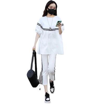 2024 楽ちんセットアップ 春夏秋 新作 半袖 ゆったり痩せ見えお腹カバースポーツウェア2着 ルームウェア スウェット上下セット スーツ レディース