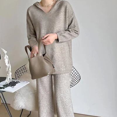 新作 シンプル 気質 レディースセットアップ ニット トップス ワイドパンツ 二点セット 着痩せ セット 二点セット 大きめサイズ