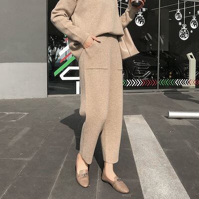 新作 おしゃれ カジュアル 気質 レディースセットアップ 百掛け セーター ワイドパンツ カジュアルパンツ 二点セット シンプル 涼しく楽ちんセットアップ セット