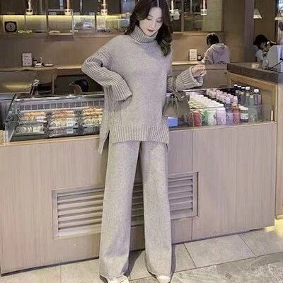 気質 上下レディースセットアップ ニット アウター 二点セット セーター ワイドパンツ セットアップ 通勤 長袖セーター 福袋