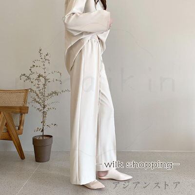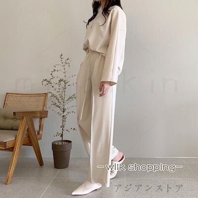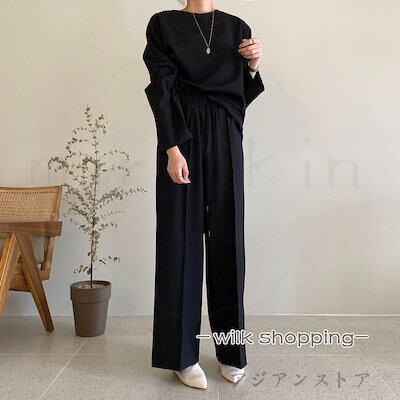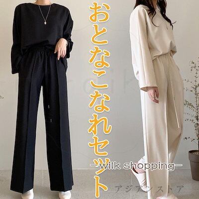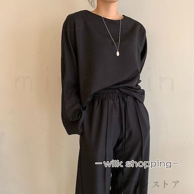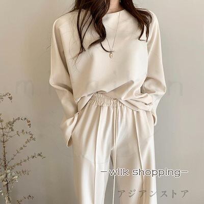 セットアップ レディース Tシャツ ワイドパンツ クルーT イージーパンツ カットソー トレーナー ロングパンツ 長ズボン 上下セット ウエストゴム 紐付きおすすめ商品