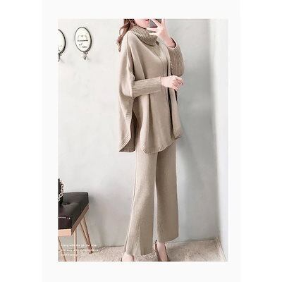セットアップ ニットセーター レディース ワイドパンツ ニットパンツ 2点セット 30代 40代 50代 お洒落 ママ トップス 入園式 卒業式 セレモニー 上品