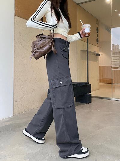 2024秋冬パンツ ロング丈 ワイド ポケット ハイウエスト 美脚効果 脚長効果 細見え 秋 白 おしゃれ かわいい 韓国ファッション レディース お出かけ