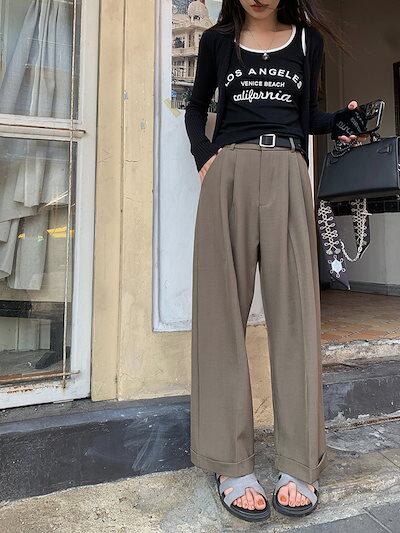 2024 春秋パンツ ロング丈 ワイド ストレート ハイウエスト 美脚効果 脚長効果 細見え 秋 黒 白 緑 おしゃれ かわいい 韓国ファッション レディース お出かけ
