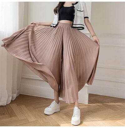 2024新作 プリーツパンツ ワイドパンツ リラックスパンツ 無地 フレアパンツ シフォン ガウチョ スカーチョ プリーツ パンツ レディース きれいめ 可愛い 大きいサイズ 体型カバー おしゃれ
