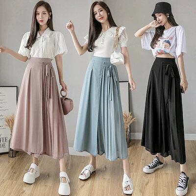 2024 スカート 韓国ファッション スラックスパンツ シフォンパンツ フレアパンツ ハイウエスト パンツ夏 薄手 ワイドパンツ レディース ロングパンツ