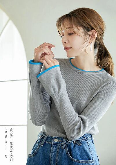 夏 人気なサマーニットリブニット フレア袖 ニット フレアスリーブ バイカラー ニットソー ニットトップス レディース Uネック ラウンドネック 着痩せ 華奢見え レディーストップス 韓国ファッショ