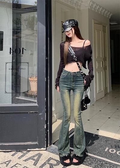 2024春夏 ボトムス パンツ デニム ロングファッションワイドレッグ レディース レトロズボン韓国 ハイウエスト 足長効果 薄手 おしゃれ お出かけ 細見え