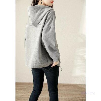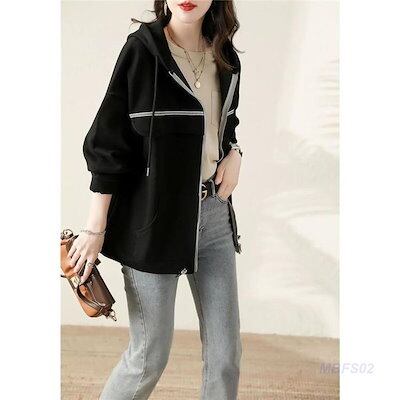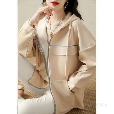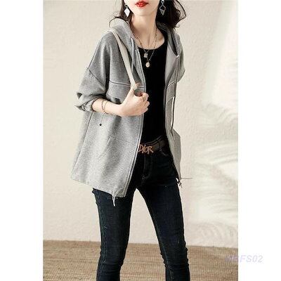 パーカー ジップアップパーカー レディース 長袖 前開き フード付き トップス アウター 無地 カジュアル ゆったり シンプル エレガント 上品 春秋