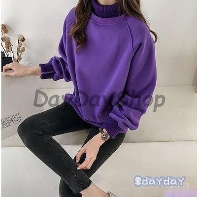 トレーナー 裏起毛 シンプル レディース スウェット パーカー 長袖 ニットタートルネック 原宿風