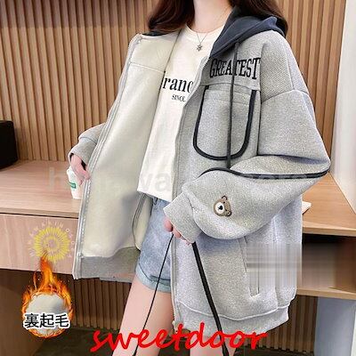 パーカー レディース 長袖 冬 裏起毛 厚手 防寒 保温 オーバーサイズ ゆったり フード付き ジップアップ 前開き カジュアル オシャレ 冬服 トップス