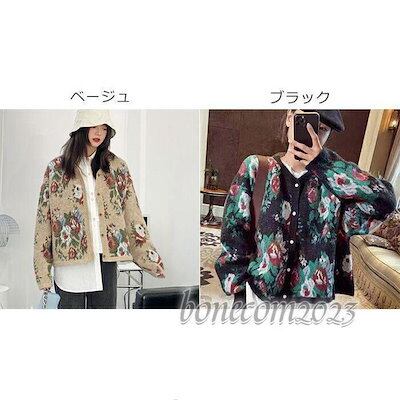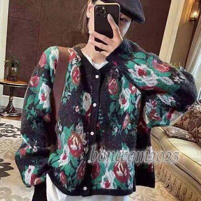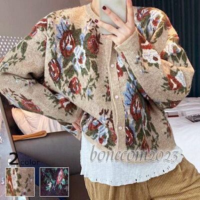 レディース セーター ニットカーディガン 長袖 レトロフラワー 大柄 花柄 秋冬 ルーズニット