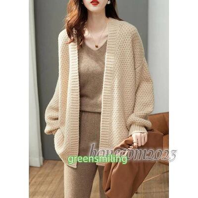 ニットカーディガン レディース アウター 秋冬 新作 ショートニット Vネック 羽織り オーバーサイズ ミドル丈 長袖 ゆるシルエット無地 こなれ感 シンプル