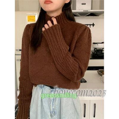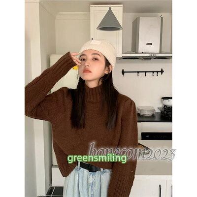 フリーサイズセーター ニットカーディガン レディース ハイネック ゆったり ニットセーター 体型カバー ミディアム丈 長袖 無地 大人 上品 きれいめ 韓国フ