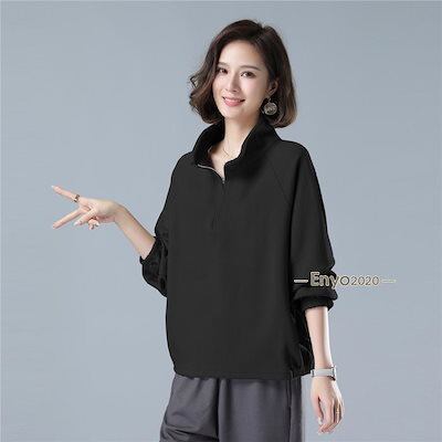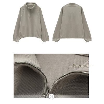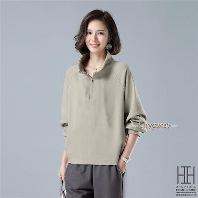 レディース ゆったりとしたシルエットのプルオーバーパーカー トップス 秋服 ハーフジップ仕様 冬服 トップス スタンドカラー 体型カバー 着痩せ カジュアル