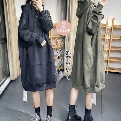 パーカー ロングパーカー ワンピース レディース トップス 無地 長袖 大きいサイズ 春 秋 冬 フードパーカーレディースファッション 体型カバー