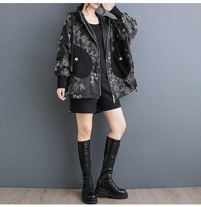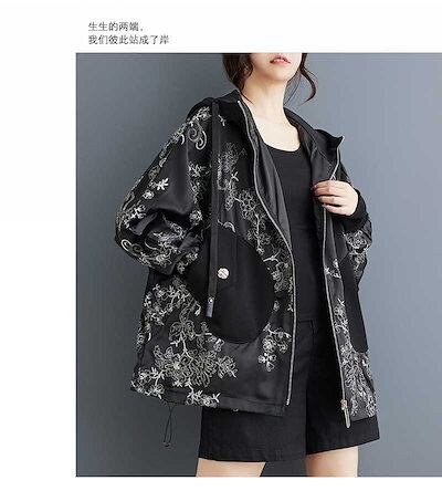 「ファットガール」 2024秋新品 パーカー ジップ 刺繍 ジャケット 大きいサイズ 体型カバー レディース ドッキング ファスナー アウター コート マウンテンパーカー メガ割