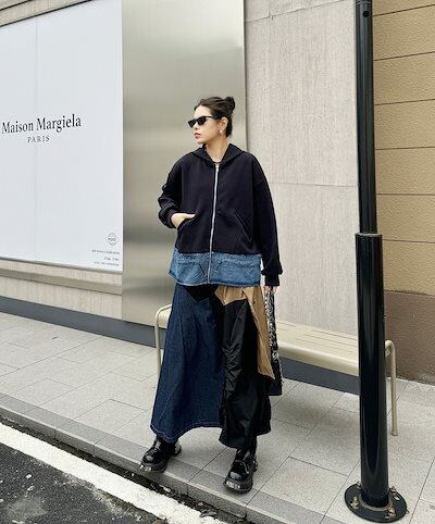 【J.Fashion】 2024秋新品 デニムドッキング ファスナー パーカー スウェット トレーナー レディース ジャケット アウター メガ割