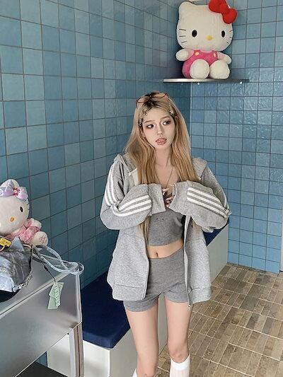 2024 秋トップス パーカー フード付き チャック 長袖 ストライプ ゆったり 細見え 秋 白 黒 おしゃれ かわいい ガーリー キュート 甘め 韓国ファッション レディース お出かけトラック