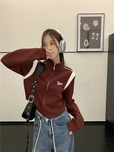 2024春夏 アウター ショート ブルゾン かわいい 長袖 カジュアル ファッション フルブルゾン トップスハイスタンド ストリート レディースお出かけトラック