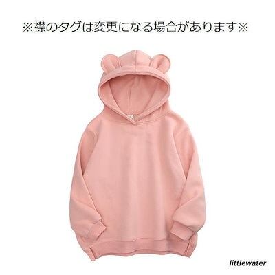 パーカー プルオーバー レディース トップス 長袖 裏起毛 フード付き 耳付き スリット シンプル 無地 かわいい カジュアル
