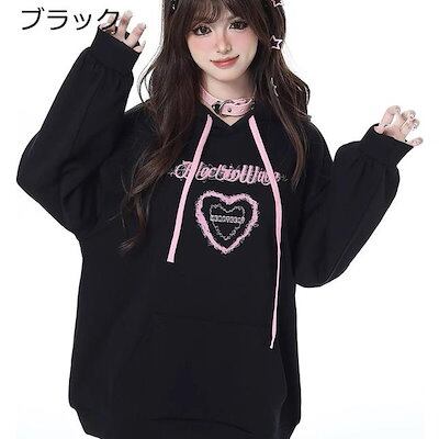 パーカー 可愛い レディース ハート 柄 プリント フード付き 長袖 ゆったり ふんわり 暖かい おしゃれ ストリート系 量産型 韓国 春おすすめ商品