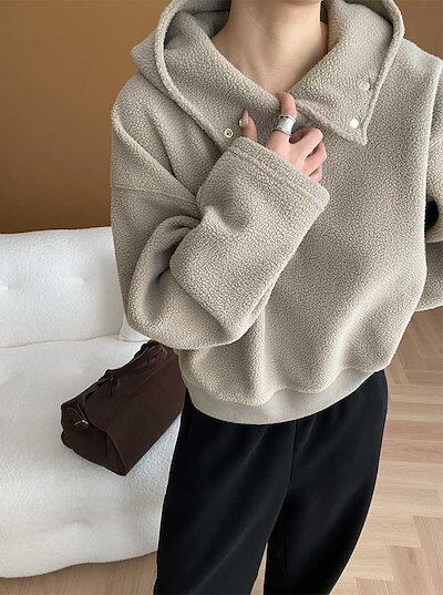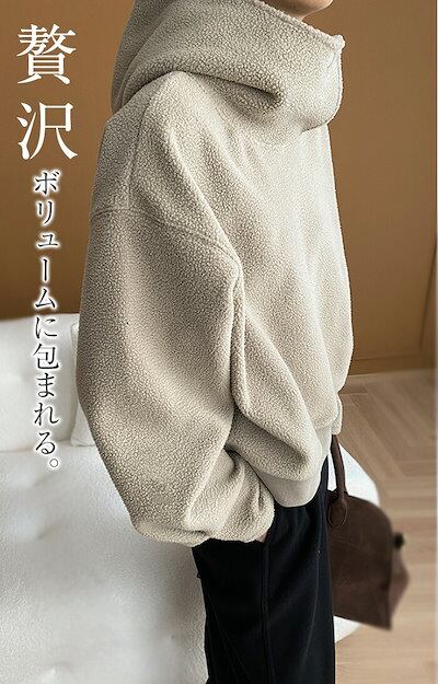 パーカー ボアパーカー ボア コート アウター プルオーバー トップス 大きいサイズ レディース フード パーカ トレーナー ファー ドロップショルダー ボアブルゾン 無地 あったか 防寒 ゆったり
