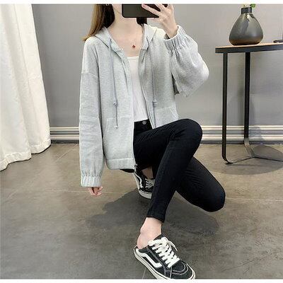秋新作 パーカー ジャケット レディース ジップアップ パーカー チュニック 長袖 ゆったり 体型カバー カジュアル アウター