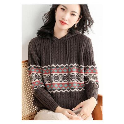ニット ニットパーカー ニットセーター 花柄 レディース 長袖 トップス 韓国風 お洒落 体型カバー 丸首 カジュアル ニットウェア 上品 綺麗