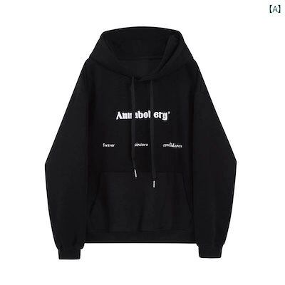 パーカー レディース カジュアル 快適 刺繍 文字 フード付き 裏起毛 黒 スウェットシャツ 女性 秋冬 厚手 ジャケット