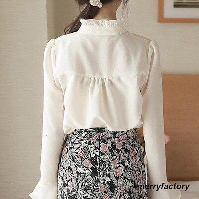 リボンブラウスレディース襟フリル長袖おしゃれ白ピンク可愛いかわいいリボンタイシャツ秋冬春立ち襟スタンドカラー春服演奏会フォーマル
