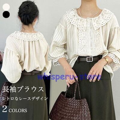 レースブラウス 長袖 レディース ブラウス ゆったり 風 長袖シャツ レトロ オーバーサイズ 長袖ブラウス 姫系 ゴージャス 前開き 春 秋