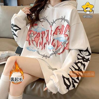 パーカーレディース長袖トップス裏起毛厚防寒保温大きいサイズゆったりおしゃれフーディー冬冬服カジュアル英字柄ハット柄