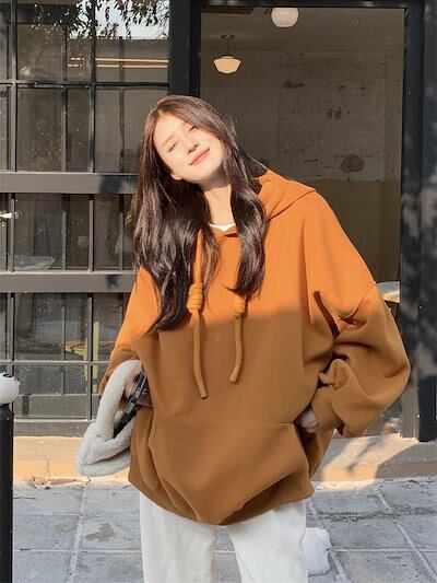 急速出荷韓国 パーカー 百掛け コントラストカラー スウェット ゆったり大人 パーカー 中わた入り 厚手 フード付きトレーナー レディース 秋 ゆったり ミディアム丈 トップスメガ割