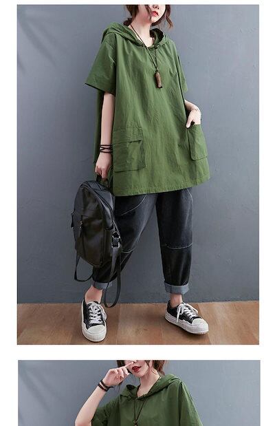 「ファットガール」 2024夏 パーカー 半袖 トレナー フード付き 無地 ポケット スウェット 体型カバー 大きいサイズ ゆったり レディース