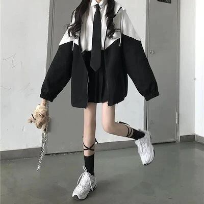 2024 秋 韓国 かわいい レディース アウター ブルゾン お出かけ ブラック配色コーデ アウター羽織り長袖セクシートップスサイド冬カジュアルファッション系お出かけフル丈トラック | Jeannede ジャンヌデ