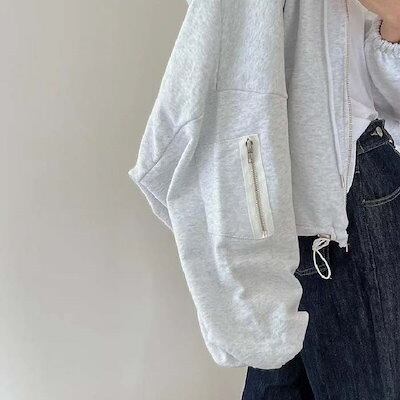 ジップアップパーカー レディース 秋 春 パーカー ジャケット スウエット フード付き パーカー コート ショート丈 コート トップス 大人 軽量 シンプル 無地 普段着 着回し力 着痩せ 体型カ