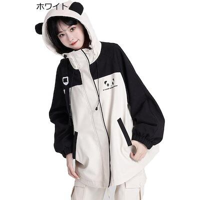 パンダ パーカー レディース コート シンプル プリント 無地 ポケット 長袖 大きいサイズ スタンドカラー 体型カバー ゆったり 春 秋おすすめ商品