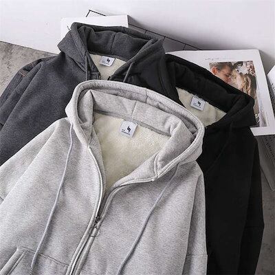 裏起毛 パーカー アウター スウェット ジャケット レディース 厚手 長袖 ゆったり ジップアップ カーディガン 秋冬 無地 フード付き ジップ あったか スエット 裏ボアパーカー フードパーカー ジ