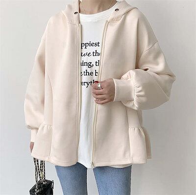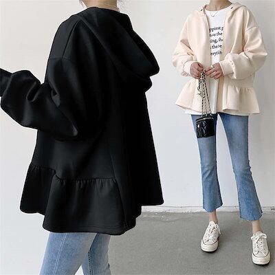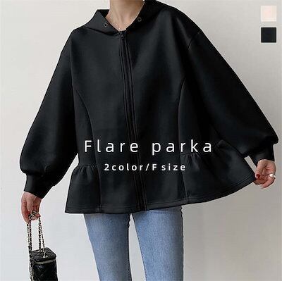 トップス パーカー ジップ 長袖 スウェット 無地 レディース フレアジップパーカー ダンボール きれいめ ジップスウェットパーカー ジップアップ フード ジップアップパーカー ライトアウター フレア