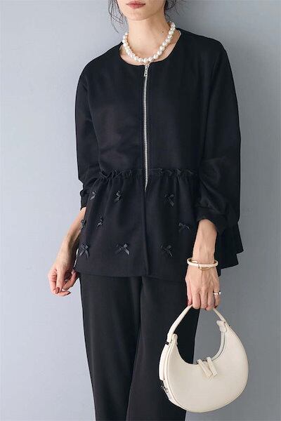 パーカー レディース スウェット トレーナー ジップ ジャケット ノーカラー アウター トップス 前開き 春 秋 冬 長袖 フリル フレア 可愛い 羽織り 通勤 おしゃれ シンプル きれいめ ファスナ