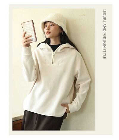 パーカ ハーフジップパーカー 裏起毛パーカー トレーナー レディース フリース ボア プルオーバー トップス 秋 冬 長袖 厚手 無地 フード付き あったか 防寒 保温 ゆったり 体型カバー スウェッ