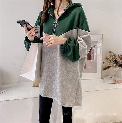 パーカー レディース ワンピース ワンピ トップス アウター トレーナー ジャージ スウェット フード ロングパーカー プルオーバー 裏起毛 厚手 ハーフジップ 配色 チュニック スポーツウェア カジ