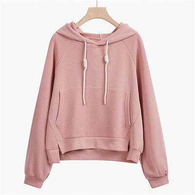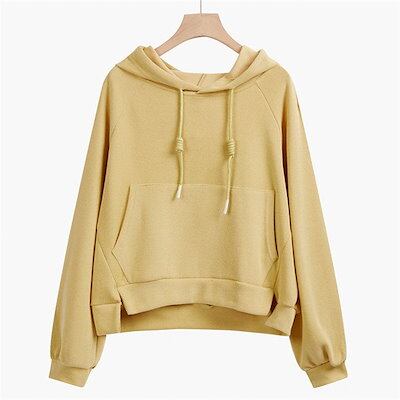 パーカー レディース トップス フード付き ショート 長袖 カジュアル 可愛い スリット フェイクパーカ ゆったり おしゃれ シンプル