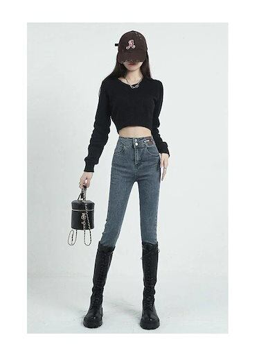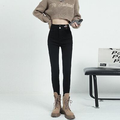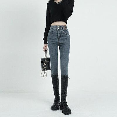 デニムパンツスキニーパンツデニムパンツスキニーパンツスキニーパンツダブルブレストタイト起毛デニムパンツジーンズレディースファッションスリムウェア