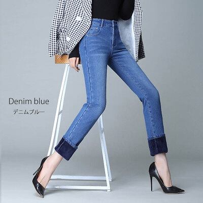 デニムパンツ 裏起毛 レディース 秋冬 ボトムス パンツ 裏ボア フリース ストレッチ 美脚 デニム ロングパンツ 暖かデニム あったか ボア 細身 ストレート ジーンズ ジーパン きれいめ おしゃ