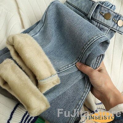 デニムパンツ 韓国ファッション ジーンズ レディース 裏起毛パンツ 暖かい 着痩せ おしゃれ 美脚 ストレッチ ストレート 伸縮