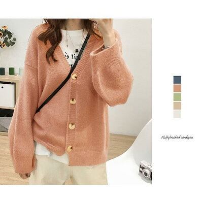 カーディガン ニットカーディガン レディース ニット 長袖 前開き ボタン付き ニットカーディ レア袖 ゆったり 大きめ おしゃれ ふわふわ