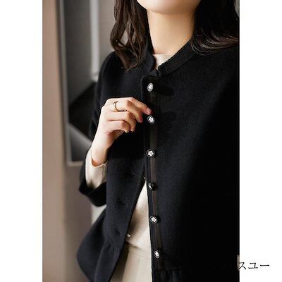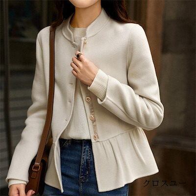 冬アウター コート ジャケットコート ボタン スタンドカラー フレア裾 アウター ミディアム丈 レディース
