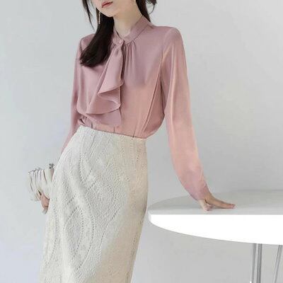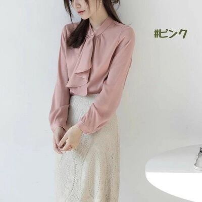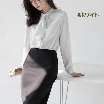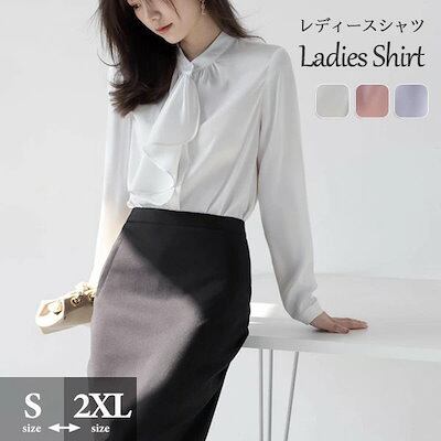 ボウタイ ブラウス レディース リボン リボンタイ ボタン 落ち感 タレ感 ドレープ性高い ストンと落ちる フォーマル 大人 長袖あり 春 秋 おしゃれ 上品 きれいめ ゆったり 薄手 無地 シンプル